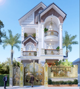 Biệt thự 3 tầng với sự kết hợp của phong cách truyền thống và hiện đại đã tạo ra 1 ngôi biệt độc đáo và đẳng cấp được thiết kế với kiến trúc tổng thể 3 tầng cân xứng tạo nên một cảm giác hài hòa và cân đối. Ngôi biệt thự 3 tầng độc đáo, hiện đại, cổ điển được kiến trúc sư sử dụng các gam màu nâu của gỗ, tông màu vàng tạo không gian ấm cúng cho mái ấm của gia chủ và kết hợp gam màu trắng tạo sự sang trọng nổi bật cho căn biệt thự, cùng với các vật liệu, nội thất tổng thể đa số được dùng là bằng gỗ mang đậm kiểu cách sang trọng và cổ điển giúp tạo nên một diện mạo hiện đại, sang trọng và điểm nhấn riêng cho ngôi nhà.